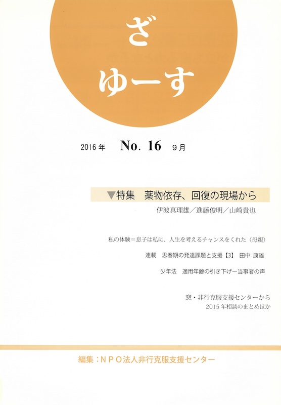 ざ ゆーすNo.16 薬物依存、回復の現場から 2016年10月2日2025年7月9日 NPO法人 非行克服支援センター 編/2016年9月/800円(税別)ISBN978-4-915143-51-9 C0037 特集 薬物依存、回復への道のり 続きを読む →